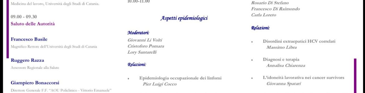Il 1° giugno a Catania si terrà un interessante evento dal titolo “Linfoma: malattia professionale?“, organizzato dal SIML, dall’Univ. di Catania e dall’Azienda Osp. Policlinico di Catania.
