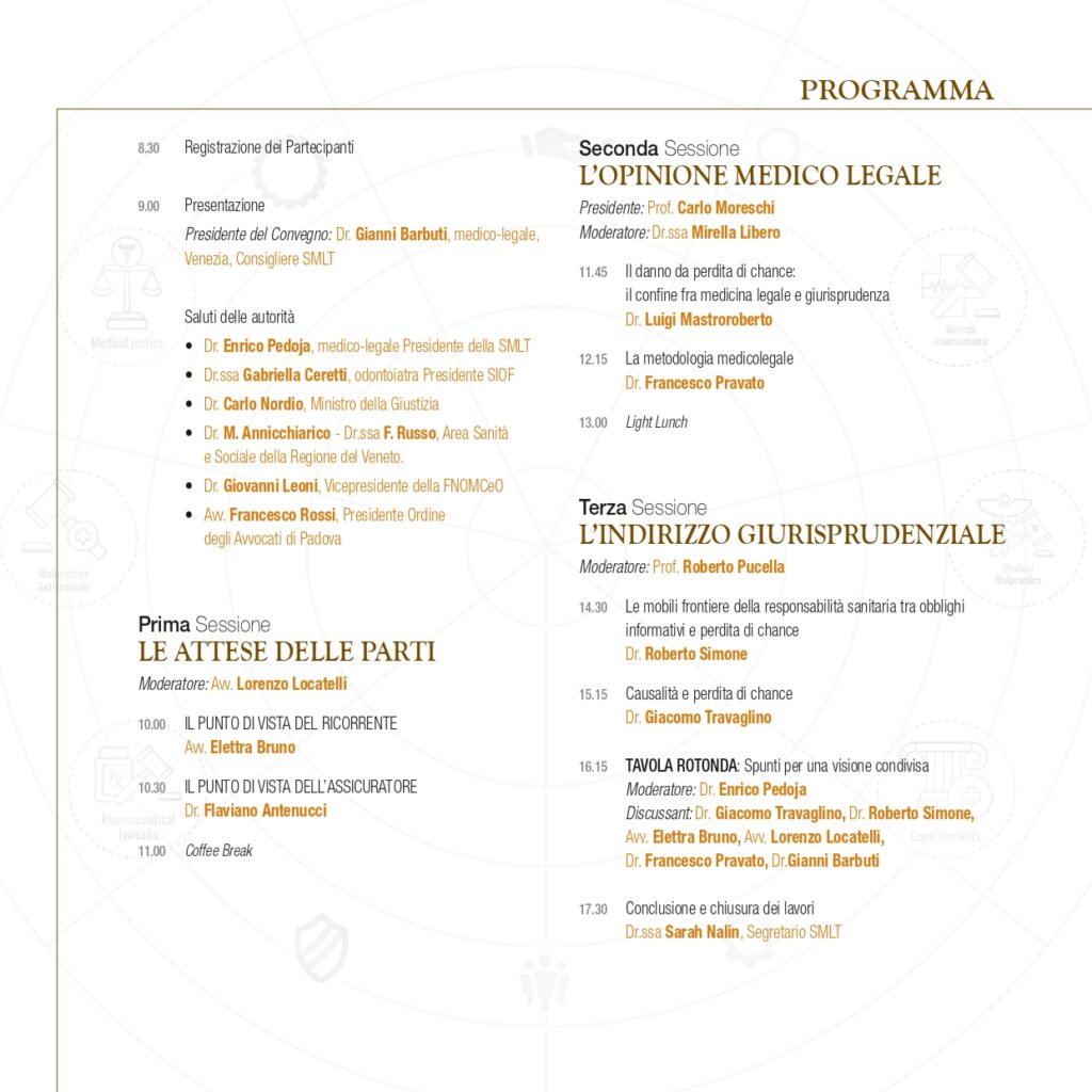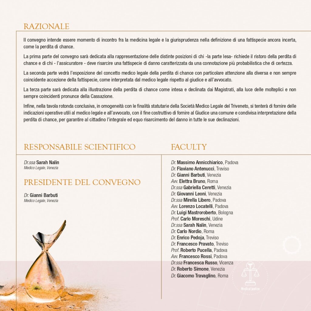 Come è possibile leggere approfonditamente anche nella locandina, il convegno intende essere momento di incontro fra la medicina legale e la giurisprudenza nella definizione di una fattispecie ancora incerta, come la perdita di chance.